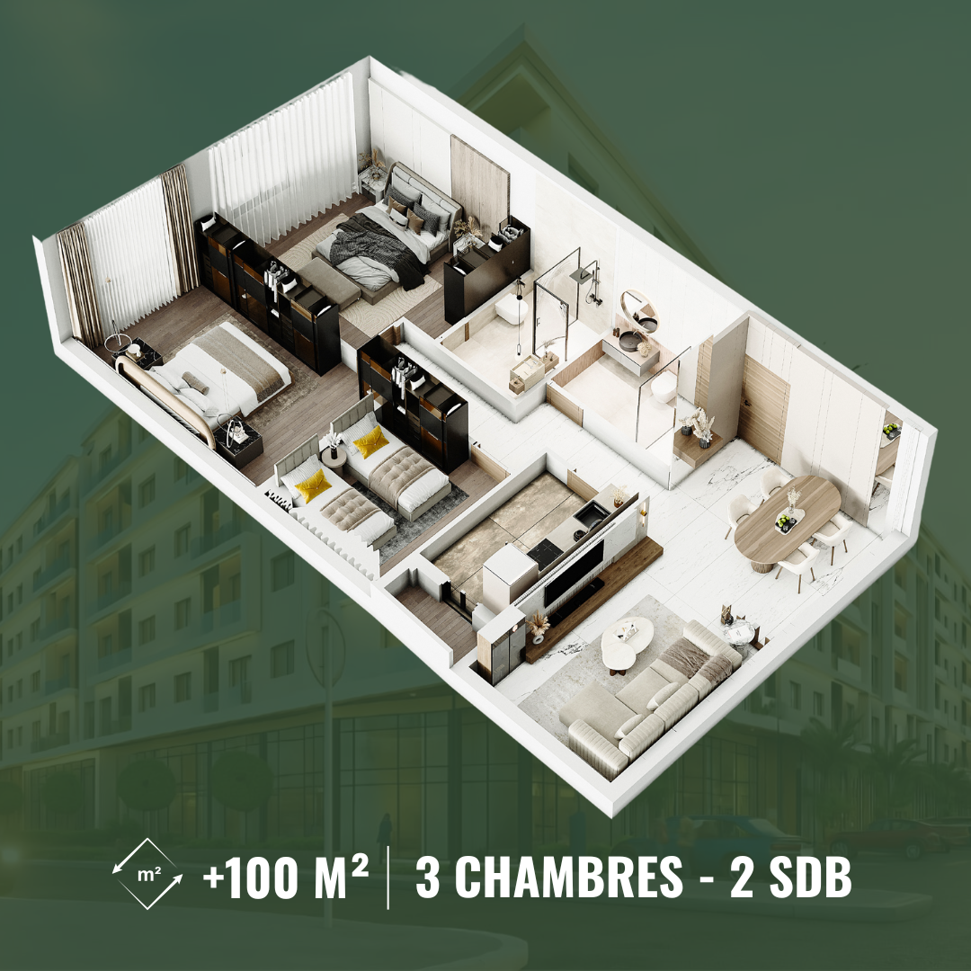 Dans un environnement d’exception, se dresse majestueusement Palmares, un complexe résidentiel de luxe offrant une expérience de vie raffinée et sereine. Chaque appartement est méticuleusement conçu pour offrir un confort supérieur et un style élégant, avec des finitions haut de gamme et des équipements modernes. Niché dans un cadre verdoyant, Palmares offre une tranquillité incomparable, avec un service de sécurité 24h/24 pour une tranquillité d’esprit totale. Profitez de vastes espaces verts et d’aménagements de détente, créant ainsi une atmosphère propice à la relaxation et au bien-être. Avec sa situation privilégiée près du centre-ville, Palmares offre un accès facile à toutes les commodités, offrant ainsi un équilibre parfait entre luxe, confort et praticité pour une vie pleinement épanouie.